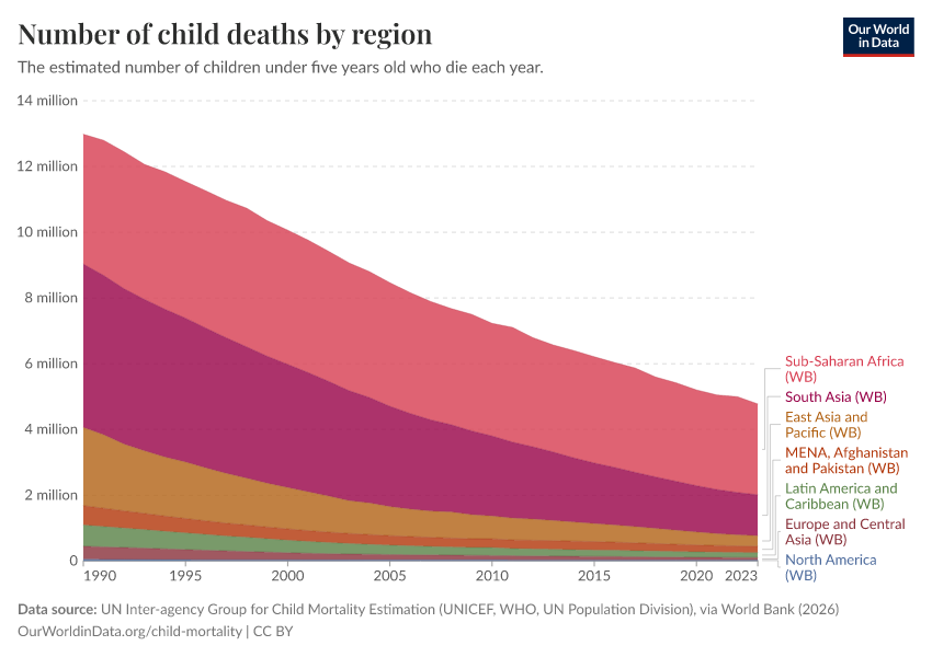 Saloni Dattani, Fiona Spooner, Hannah Ritchie, and Max Roser (2023) - “Child and Infant Mortality” Published online at OurWorldinData.org. Retrieved from: 'https://select-date-by-typing.owid.pages.dev/child-mortality' [Online Resource]BibTeX citation