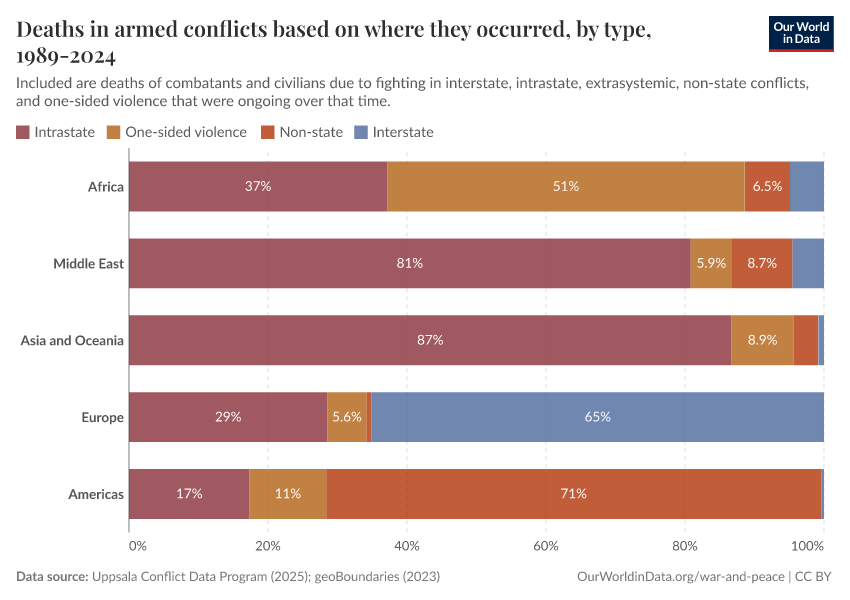 Most deaths come from intrastate conflicts and one-sided violence