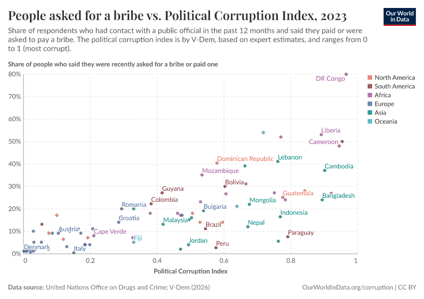 Bastian Herre, Veronika Samborska, and Esteban Ortiz-Ospina (2016) - “Corruption” Published online at OurWorldinData.org. Retrieved from: 'https://select-date-by-typing.owid.pages.dev/corruption' [Online Resource]BibTeX citation