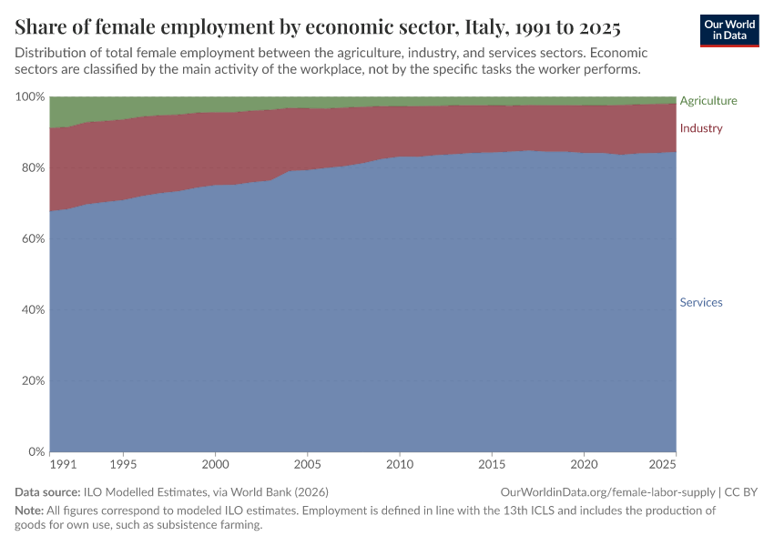 Esteban Ortiz-Ospina, Sandra Tzvetkova, and Max Roser (2018) - “Women's Employment” Published online at OurWorldinData.org. Retrieved from: 'https://select-date-by-typing.owid.pages.dev/female-labor-supply' [Online Resource]BibTeX citation