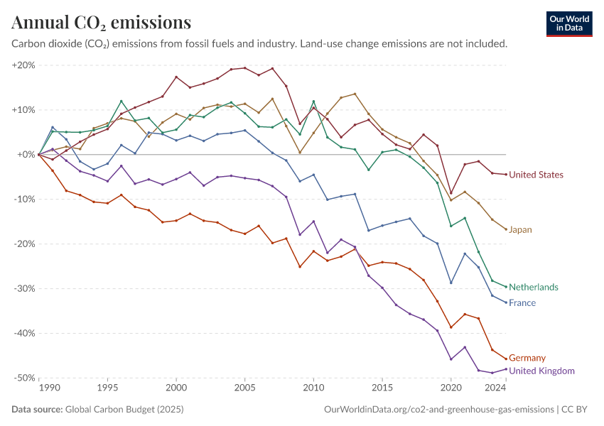 Global Carbon Budget (2025) – with major processing by Our World in Data. “Annual CO₂ emissions” [dataset]. Global Carbon Project, “Global Carbon Budget v15” [original data]. Retrieved January 6, 2026 from https://select-date-by-typing.owid.pages.dev/grapher/annual-co2-emissions-per-country