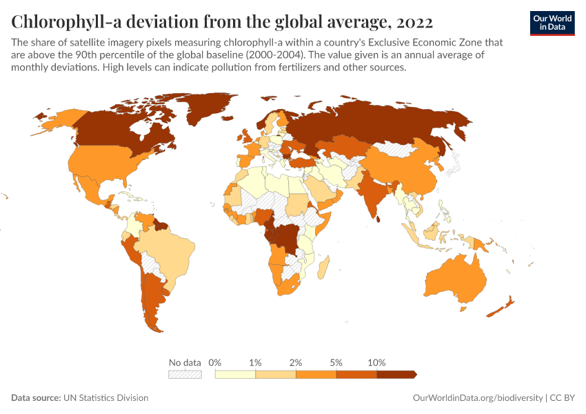 UN Statistics Division – processed by Our World in Data. “Chlorophyll-a deviation from the global average” [dataset]. UN Statistics Division, “World Environment Situation Room” [original data]. Retrieved January 6, 2026 from https://select-date-by-typing.owid.pages.dev/grapher/chlorophyll-a-deviation-from-the-global-average