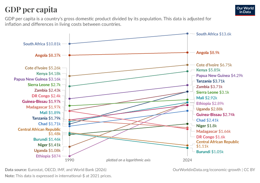 Eurostat, OECD, IMF, and World Bank (2025) – with minor processing by Our World in Data. “GDP per capita – World Bank – In constant international-$” [dataset]. Eurostat, OECD, IMF, and World Bank, “World Development Indicators 122” [original data]. Retrieved January 6, 2026 from https://select-date-by-typing.owid.pages.dev/grapher/gdp-per-capita-worldbank