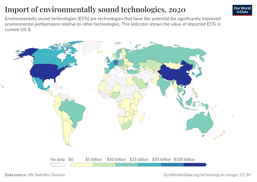 UN Statistics Division – processed by Our World in Data. “Import of environmentally sound technologies” [dataset]. UN Statistics Division, “WESR / UN COMTRADE” [original data]. Retrieved January 6, 2026 from https://select-date-by-typing.owid.pages.dev/grapher/import-of-environmentally-sound-technologies