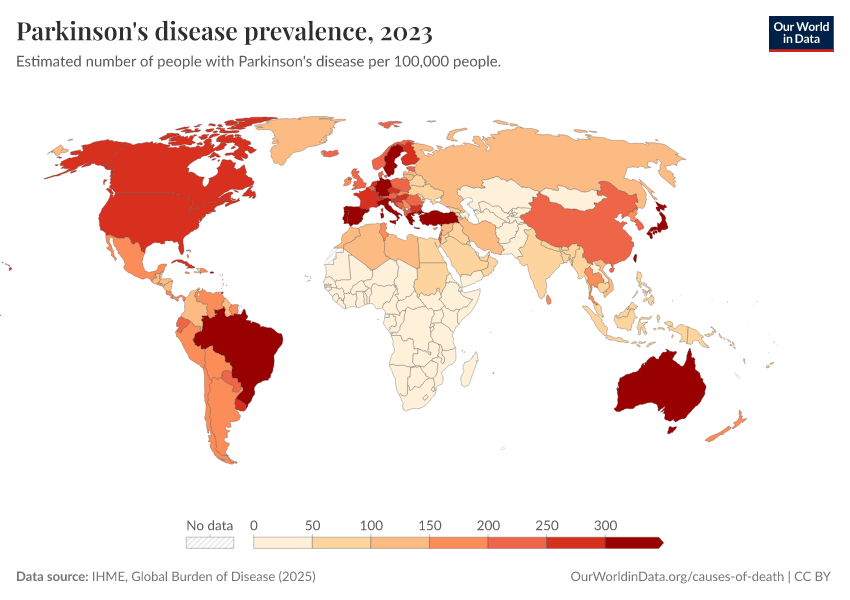 “Data Page: Parkinson's disease prevalence”, part of the following publication: Esteban Ortiz-Ospina and Max Roser (2016) - “Global Health”. Data adapted from IHME, Global Burden of Disease. Retrieved from https://select-date-by-typing.owid.pages.dev/grapher/parkinsons-disease-prevalence-ihme [online resource]How to cite this data