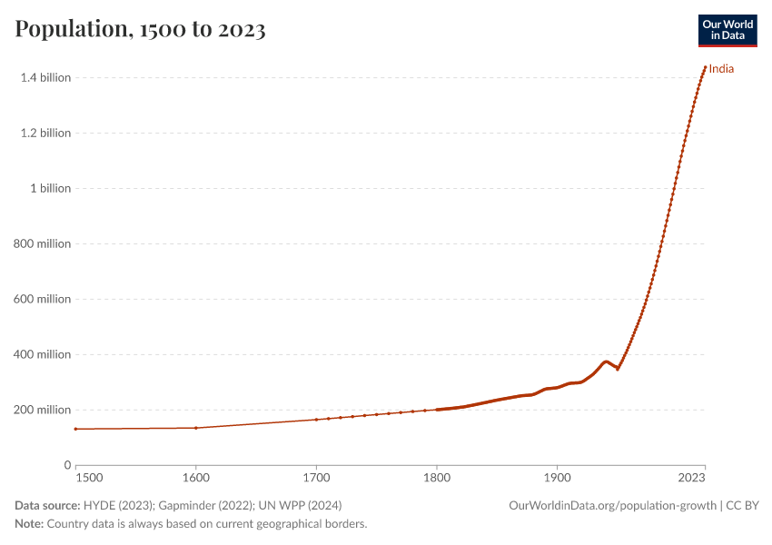 “Data Page: Population”, part of the following publication: Hannah Ritchie, Lucas Rodés-Guirao, Edouard Mathieu, Marcel Gerber, Esteban Ortiz-Ospina, Joe Hasell, and Max Roser (2023) - “Population Growth”. Data adapted from PBL Netherlands Environmental Assessment Agency, Gapminder, United Nations. Retrieved from https://select-date-by-typing.owid.pages.dev/grapher/population [online resource]How to cite this data