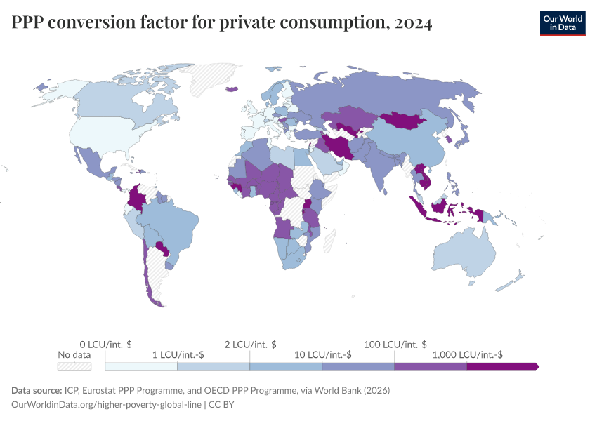 “Data Page: PPP conversion factor for private consumption”. Our World in Data (2026). Data adapted from ICP, Eurostat PPP Programme, and OECD PPP Programme, via World Bank. Retrieved from https://select-date-by-typing.owid.pages.dev/grapher/ppp-conversion-factor-for-private-consumption [online resource]How to cite this data