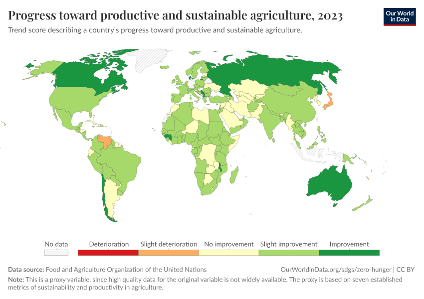“Data Page: Progress toward productive and sustainable agriculture”. Our World in Data (2026). Data adapted from Food and Agriculture Organization of the United Nations. Retrieved from https://select-date-by-typing.owid.pages.dev/grapher/progress-toward-productive-and-sustainable-agriculture [online resource]How to cite this data