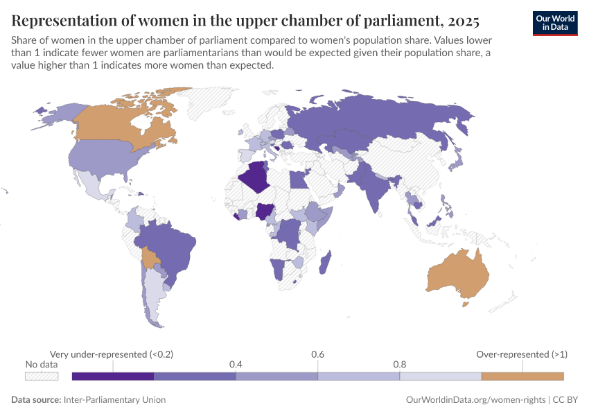 “Data Page: Representation of women in the upper chamber of parliament”. Our World in Data (2026). Data adapted from Inter-Parliamentary Union. Retrieved from https://select-date-by-typing.owid.pages.dev/grapher/representation-of-women-in-the-upper-chamber-of-parliament [online resource]How to cite this data