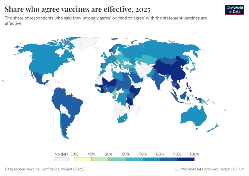 Vaccine Confidence Project (2025) – processed by Our World in Data. “Share who agree vaccines are effective” [dataset]. Vaccine Confidence Project, “Vaccine Confidence Index” [original data]. Retrieved January 6, 2026 from https://select-date-by-typing.owid.pages.dev/grapher/share-who-agree-vaccines-are-effective