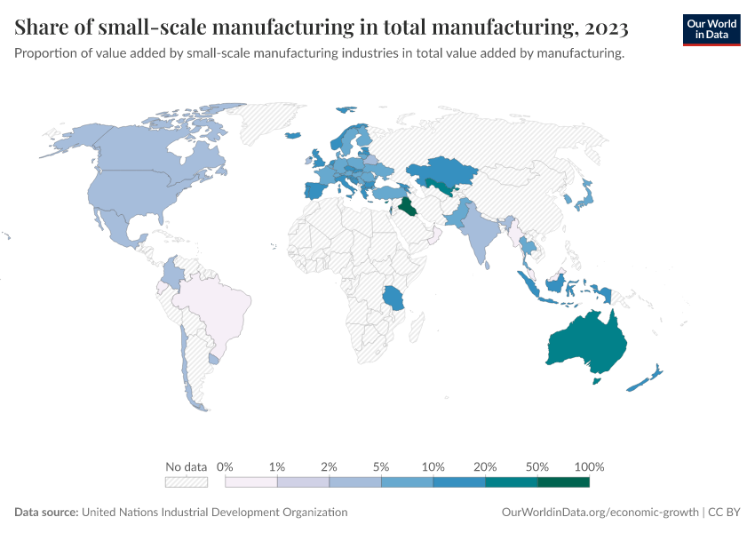“Data Page: Share of small-scale manufacturing in total manufacturing”. Our World in Data (2026). Data adapted from United Nations Industrial Development Organization. Retrieved from https://select-date-by-typing.owid.pages.dev/grapher/small-scale-industries-share [online resource]How to cite this data