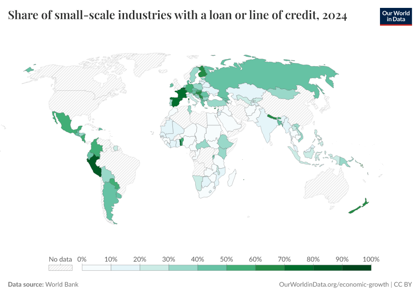 “Data Page: Share of small-scale industries with a loan or line of credit”. Our World in Data (2026). Data adapted from World Bank. Retrieved from https://select-date-by-typing.owid.pages.dev/grapher/smalsmall-scale-industries-loan [online resource]How to cite this data