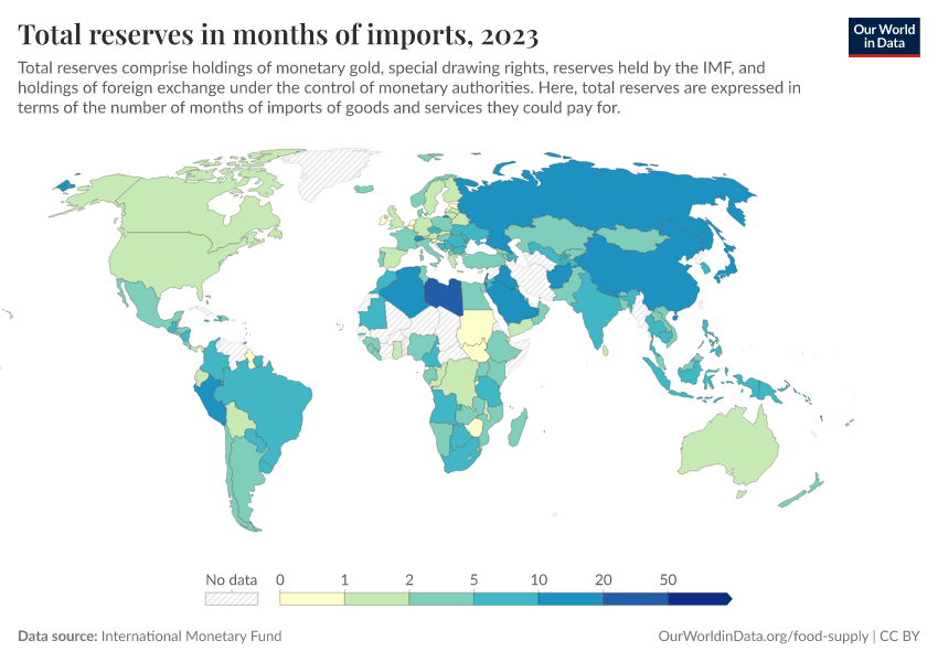 “Data Page: Total reserves in months of imports”. Our World in Data (2026). Data adapted from International Monetary Fund. Retrieved from https://select-date-by-typing.owid.pages.dev/grapher/total-reserves-in-months-of-imports [online resource]How to cite this data