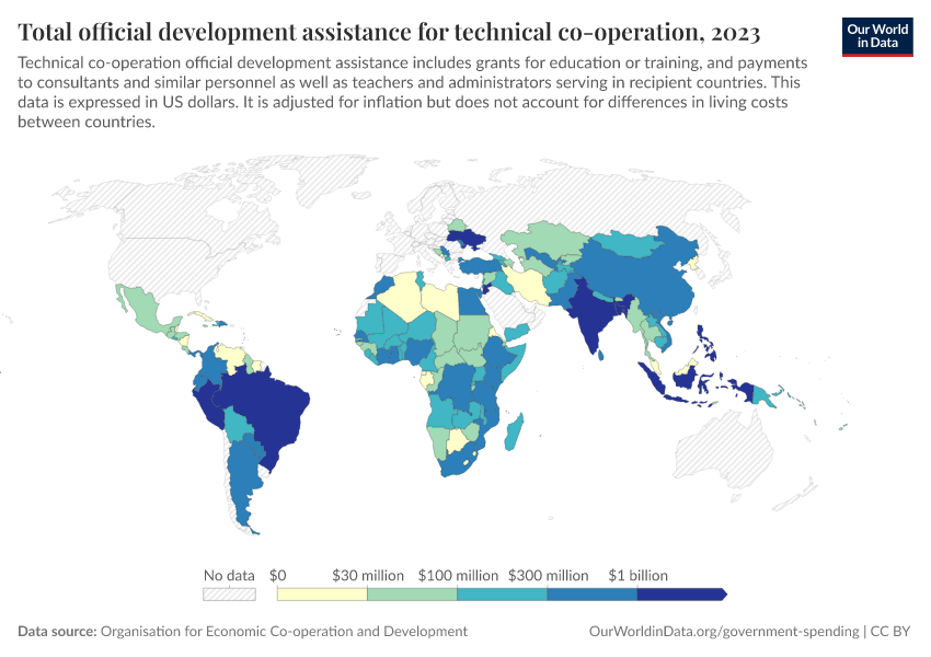 In the interactive visualization, this is shown as total ODA for technical co-operation.