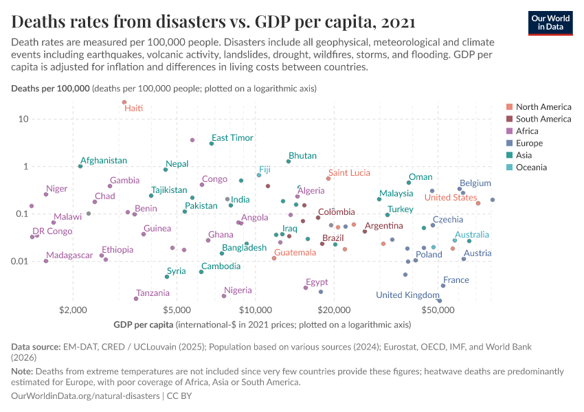 If we fail to invest in protection measures and development trends slow down, then the progress we’ve made over the last century could easily reverse, and disaster deaths could start to rise again.