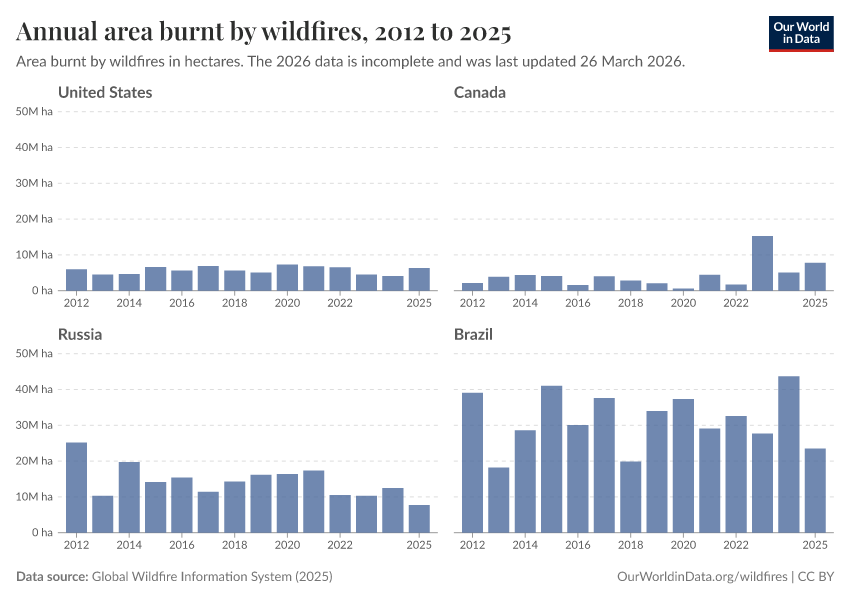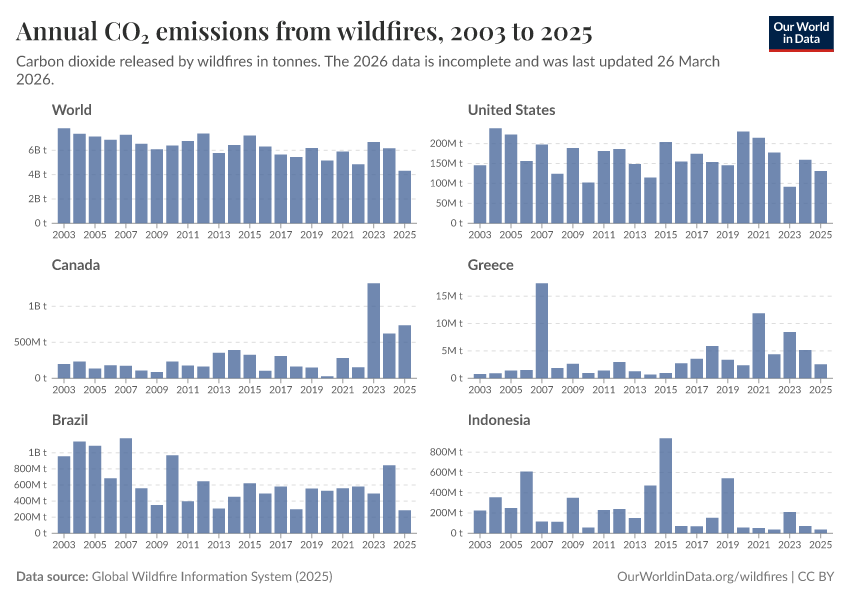 Veronika Samborska and Hannah Ritchie (2024) - “Wildfires” Published online at OurWorldinData.org. Retrieved from: 'https://select-date-by-typing.owid.pages.dev/wildfires' [Online Resource]BibTeX citation